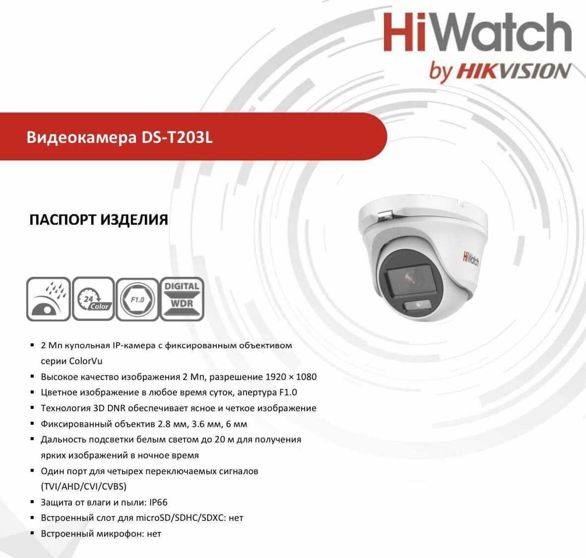 2 отзывов пользователей o HiWatch DS-T203L (2.8mm)