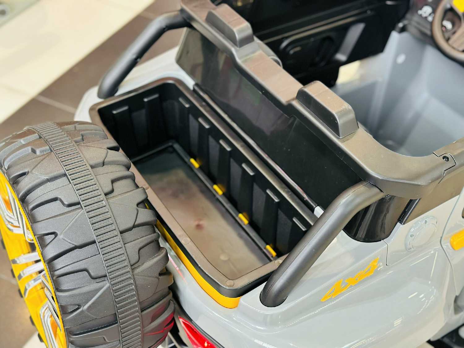 Особенности : | задний ход, индикатор заряда, на аккумуляторе, открываются дверцы, переключение скоростей, перемещение по принципу "чемодан", плавный ход, требуется частичная сборка |