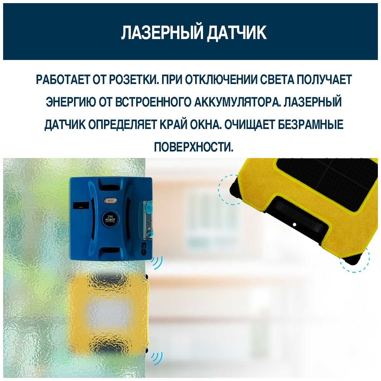 Особенности : | звуковая индикация, мойка безрамных поверхностей, автоматическое определение зоны уборки, автоматическая остановка, обход препятствий |