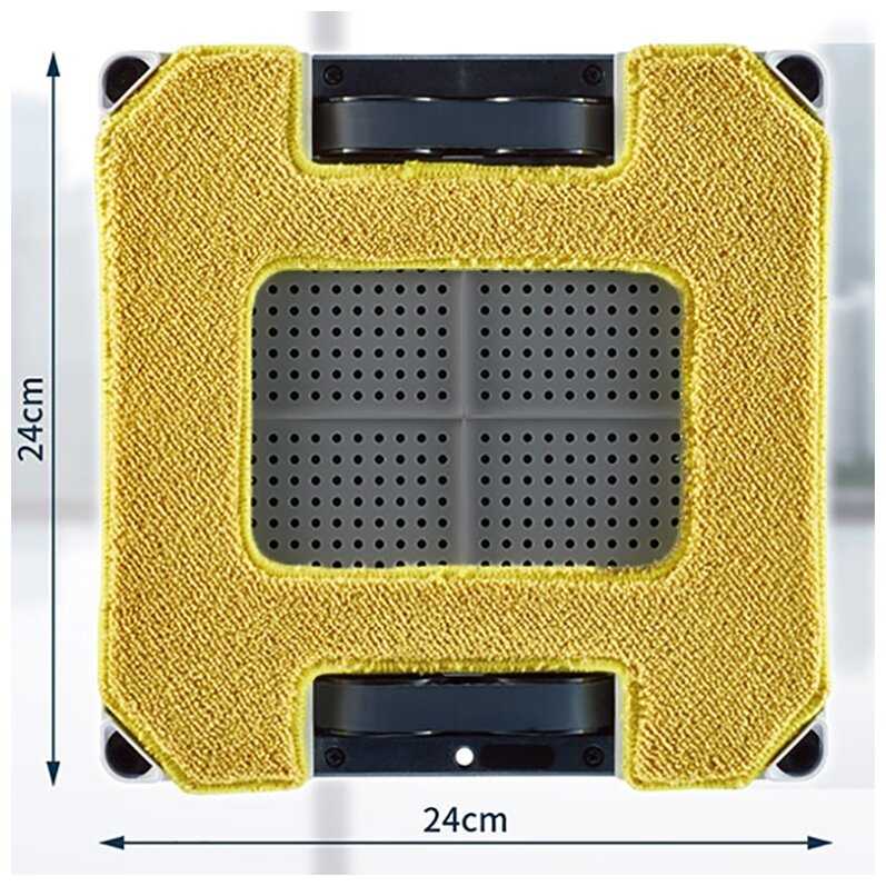 Качество мойки и особенности салфеток:Основная претензия — разводы после первого прохода, которые устраняются только повторными циклами или ручной доработкой. Квадратная форма робота улучшает очистку углов по сравнению с круглыми аналогами, но около 0,5–1 см у краёв стекла остаются необработанными. В комплекте всего 3 салфетки, что катастрофически мало: для двух лоджий пользователи расходуют до 6 штук. Микрофибра быстро загрязняется, требуя частой замены, а жёсткие синие салфетки (не входящие в базовый набор) необходимы для устранения устойчивых загрязнений.