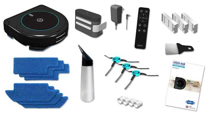 В комплекте с роботом идет: 3 запасных фильтра, 3 роторных щетки.