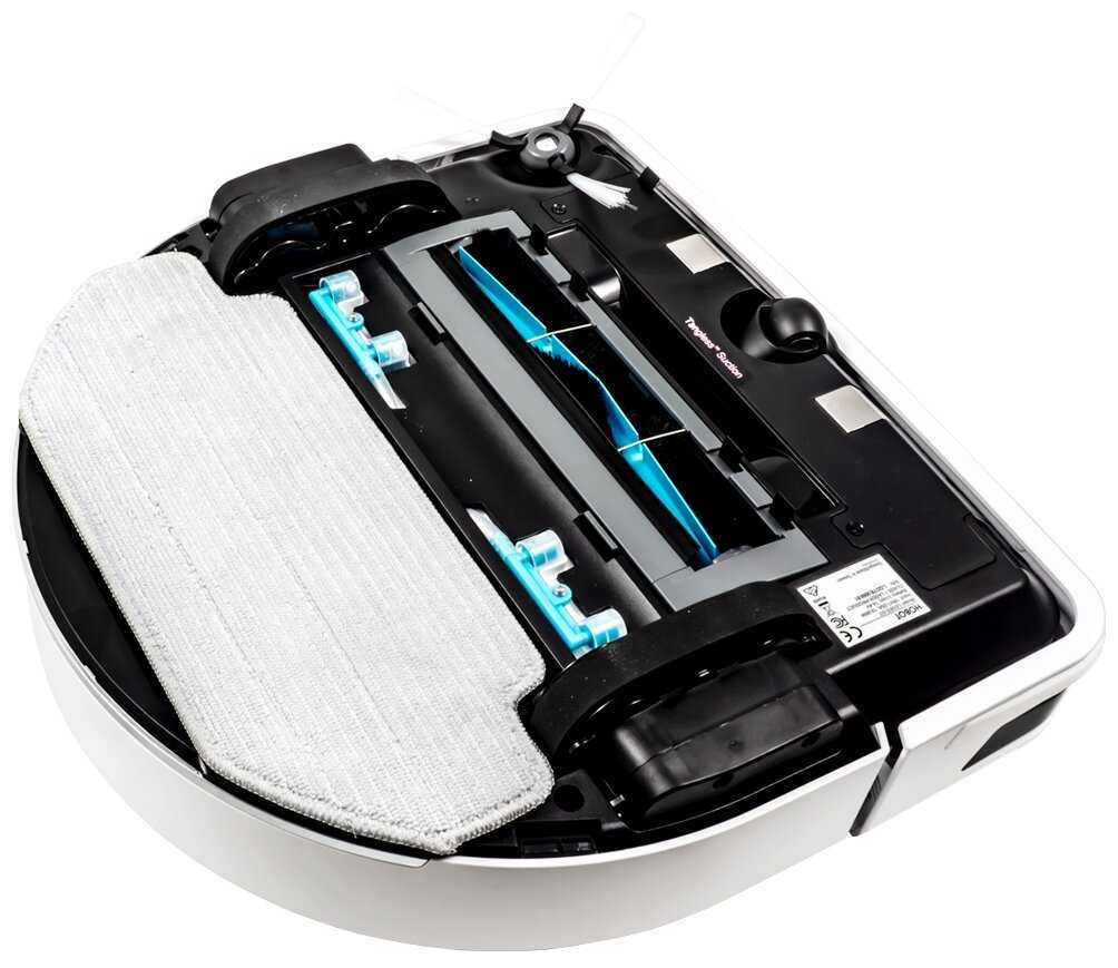 Одна боковая щётка. Есть некоторые недоработки в алгоритме уборки. Нелогичности в поведении робота с лидаром. Очень нежный пластик контейнера пылесборника.