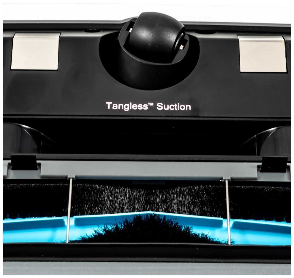 - Переднее всасывающее отверстие собирает 90% шерсти и волос до контакта с турбощёткой.