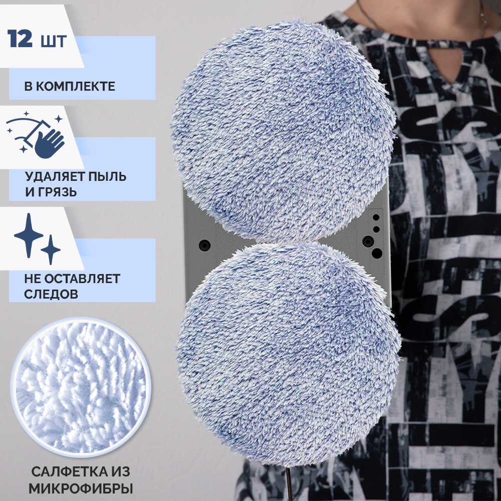Для одного окна среднего размера (1,5 м²) требуется 1 комплект салфеток на сухую и 2 на влажную уборку. Стирать их нужно без кондиционера, чтобы избежать разводов. Короткий ворс должен быть направлен наружу — неправильное закрепление снижает качество очистки. -