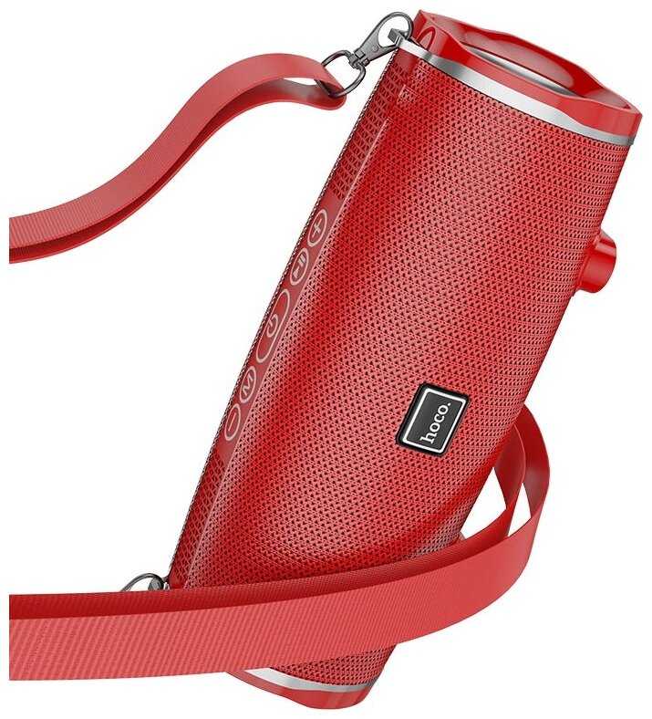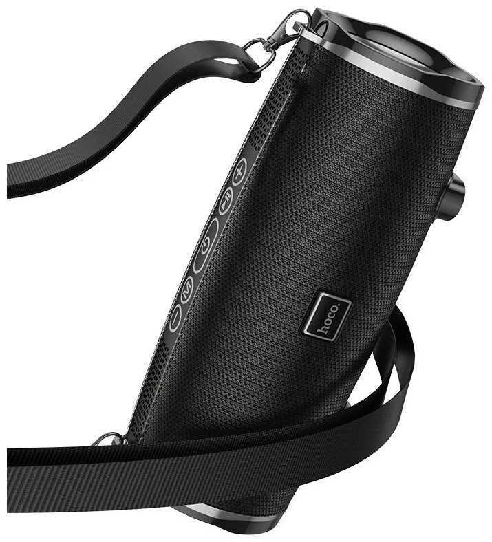 - В комплекте есть ремень для переноски, а вес колонки (около 1 кг) позволяет легко носить её с собой.