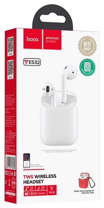 - + Хороший звук. Приятный пластик. Дальность прийома сигнала наушников 100 шагов. Полностью оригинальные, так как QR код скрытый под скреч-слоем бьется на сайте hoco и подтверждает оригинальность наушников.