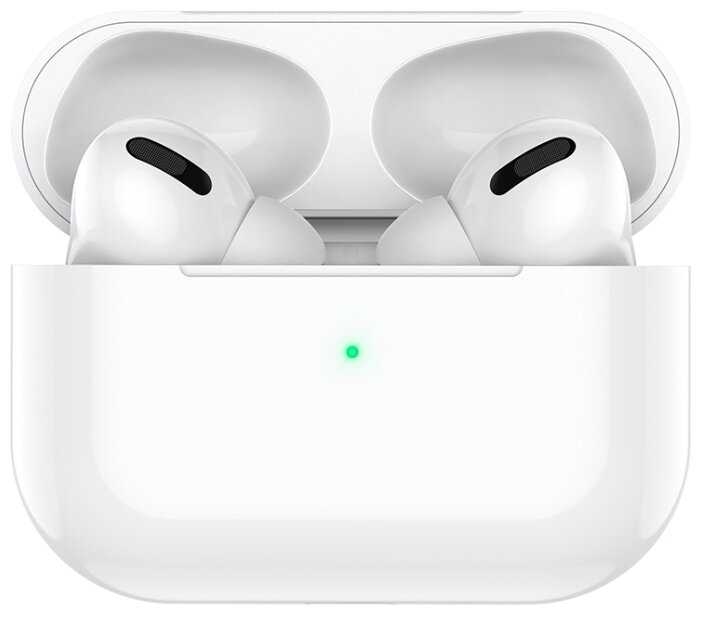 - + Внешний вид полностью повторяет AirPods pro. При подключении к телефону (iPhone) выдаёт информацию как о оригинальных наушниках. Качество звука среднее. В принципе как и на устройстве от Apple. В комплекте идёт чёрный чехол.