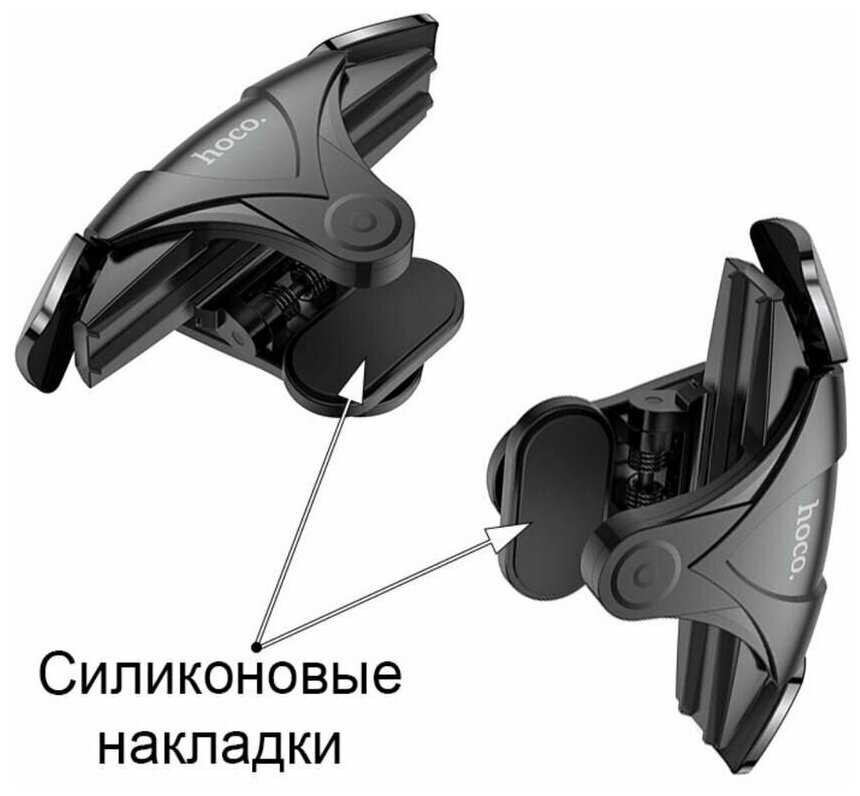- Пружинный механизм с силиконовыми накладками обеспечивает надежную фиксацию на устройствах толщиной до 12 мм, включая габаритные чехлы.