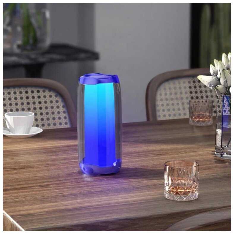 Светит в темноте великолепно, можно использовать как ночник. Звук хороший, но басы немного хрипят. Аккумулятор достаточны. Мне нравиться.