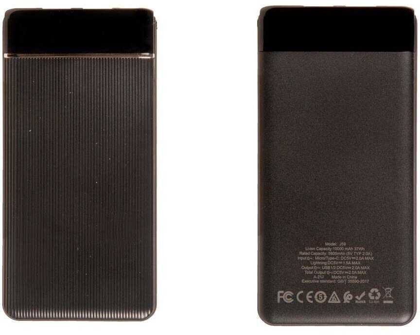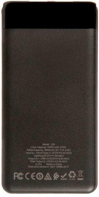 Power bank оснащён разъёмами micro USB, Lightning, USB Type-C для входа и USB для выхода. Наличие Lightning позволяет заряжать iPhone без лишних кабелей, что удобно для пользователей Apple. Однако Lightning-разъём может шататься внутри, контакт не жёсткий. Type-C вход иногда не работает. Это обеспечивает универсальность для разных устройств, но с оговорками на надёжность. -