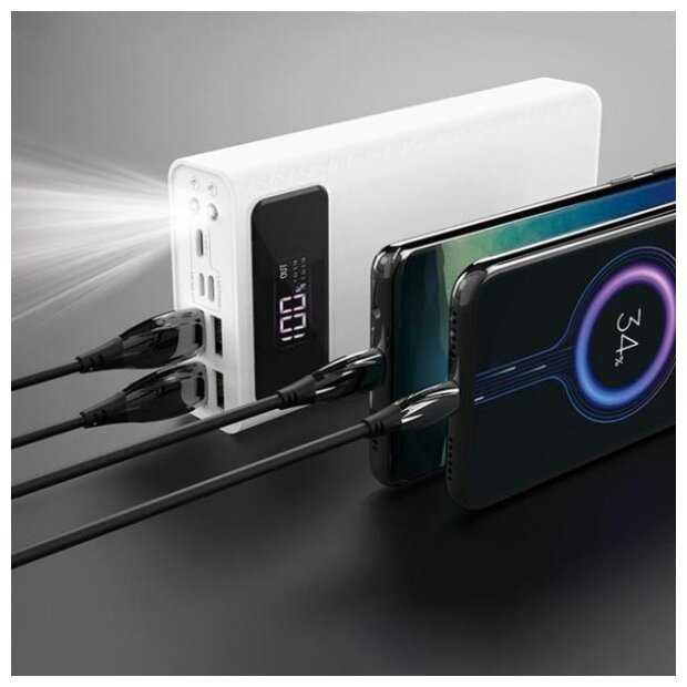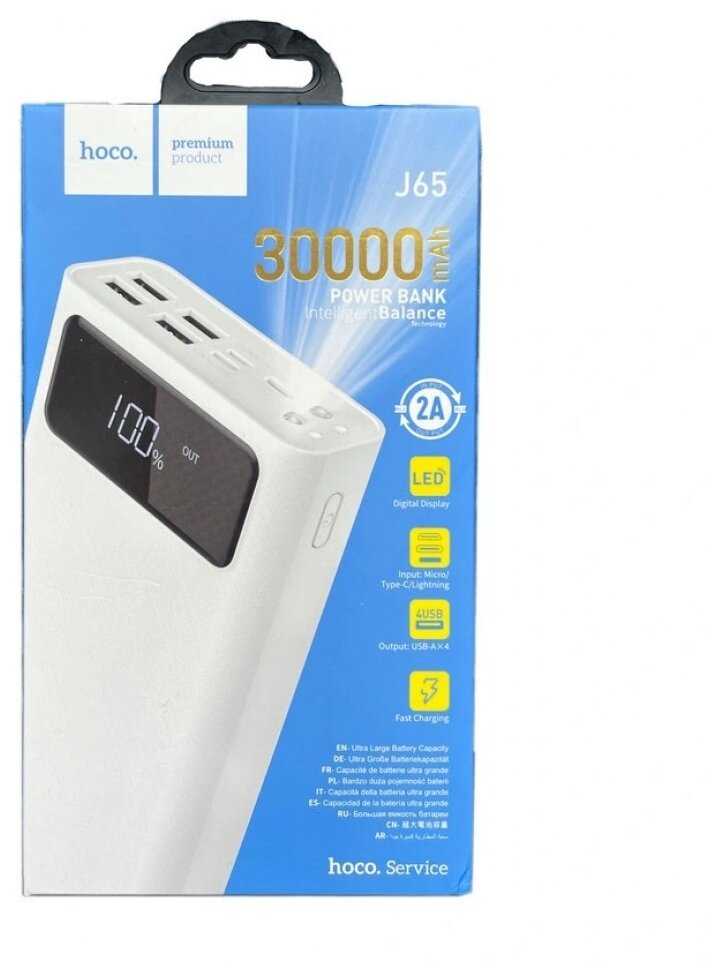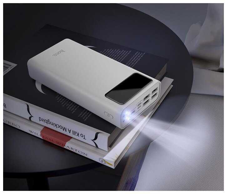 3 отзывов пользователей o Hoco J65 General, 30000 mAh, Output 4 USB ALL10W, LED + Фонарь, Белый
