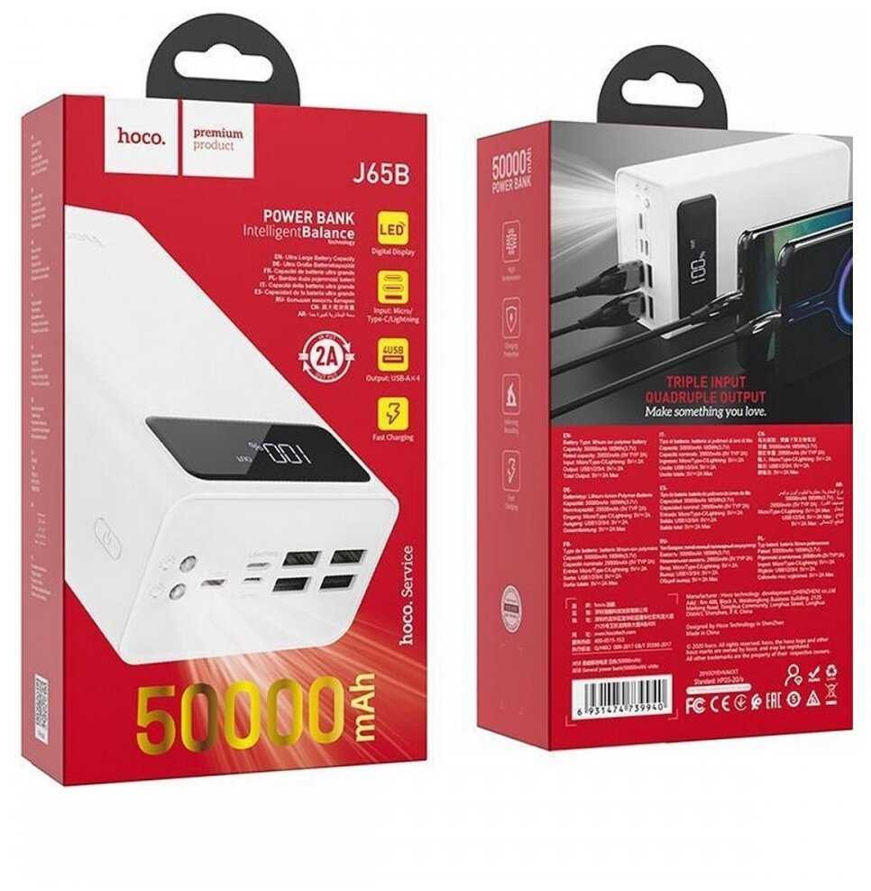 Отзывы о Портативный аккумулятор Hoco J65B 50000mAh