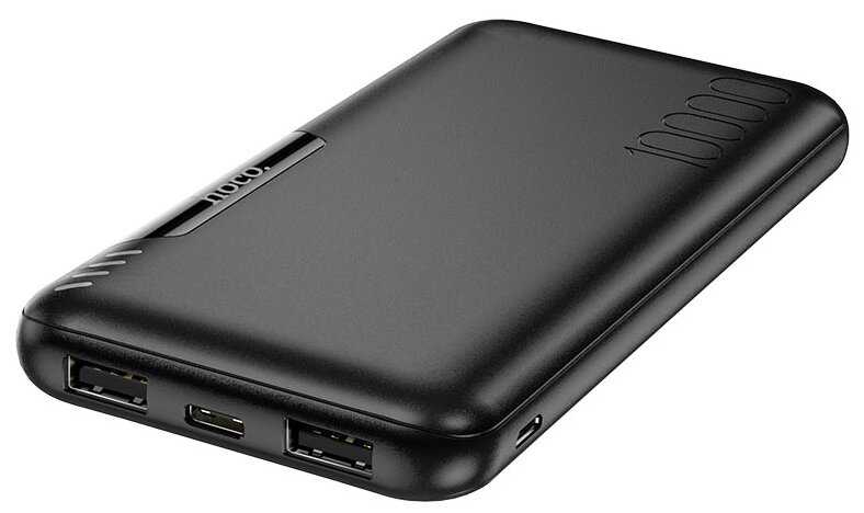 - + Компактный. Выбрал эту модель повербанка Hoco из-за ёмкости 10000 мАч, достаточной для зарядки смартфона в поездке, и приемлемой цены 990 ₽. Простая и понятная инструкция на русском. Быстро заряжается от сети через адаптер от смартфона и зарядный шнур.