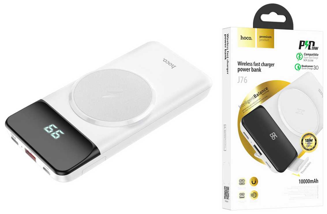 Отзывы о Внешний аккумулятор с беспроводной зарядкой и подставкой для телефона HOCO J76 10000 mAh/ Power bank HOCO с беспроводной зарядкой