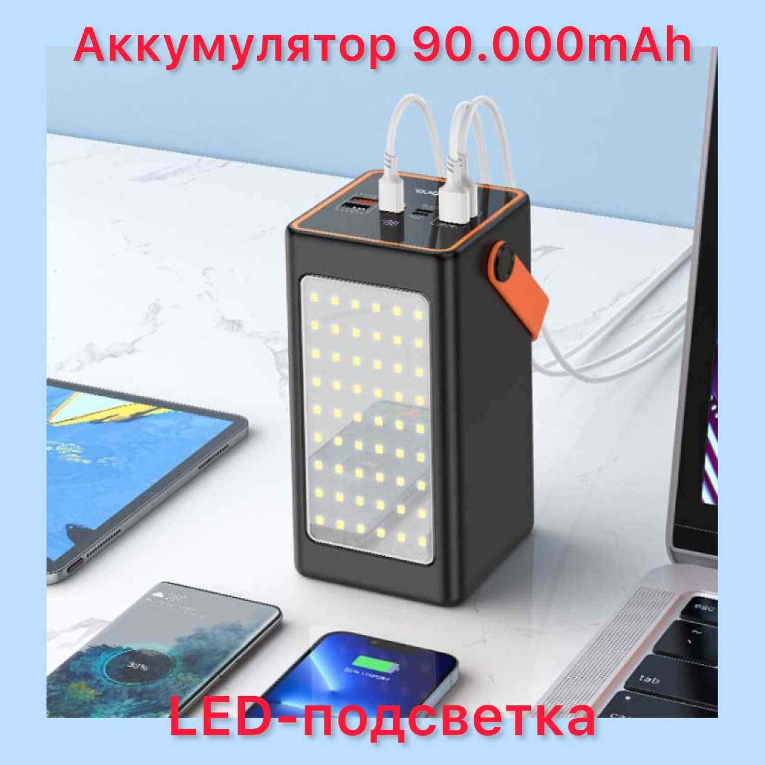 - + Очень хороший объем, на большинстве телефонов работает просто быстрая зарядка, неплохой яркий фонарик, 3 уровня света.