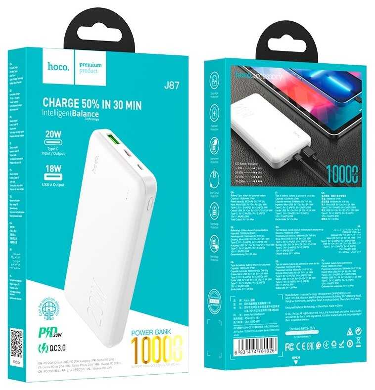 - + Отличная емкость. Чистой отдачи не менее 10тыс . Зарядка через micro-usb и type-c “+” . Отдает через usb A и С.