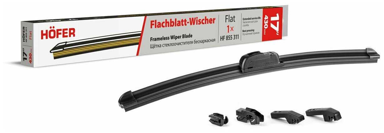 | Подробная комплектация : | Щетка стеклоочистителя бескаркасная Hofer 430 мм - 1 шт |