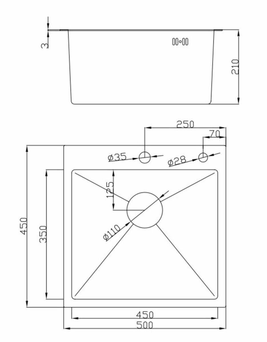 - + Небольшой размер, готовые вырезы под кран и мыло, хорошая шумоизоляция. несмотря на компактность мойки, она вместительная, даже противень удалось помыть