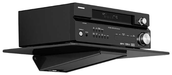 Хорошая полка,добротная,тяжелая (что так де и минус,так как есть требования к стене на которую крепиться).Стекло дымчатое,края обработаны отлично.Размер,как раз под ресивер.
