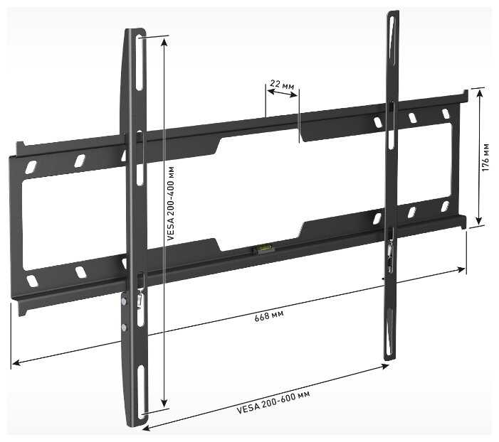 - + Удобная опция для выравнивания кронштейна по горизонту при установке на стену
