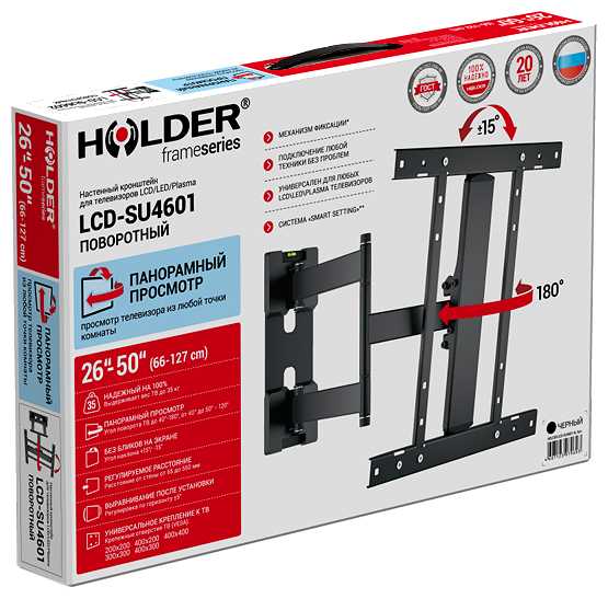 | Регулировка : | наклон, наклон и поворот, отступ от стены, поворот |