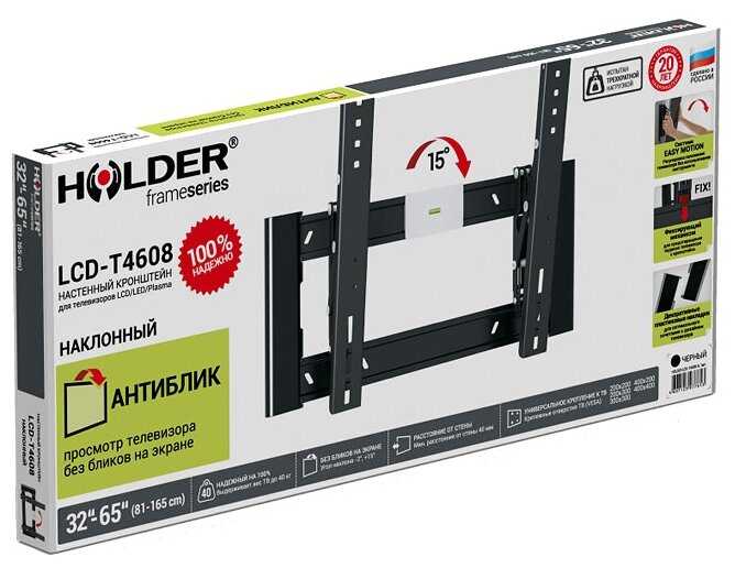 - + Надёжная конструкция. Удобная регулировка наклона. VESA вплоть до 400х400.