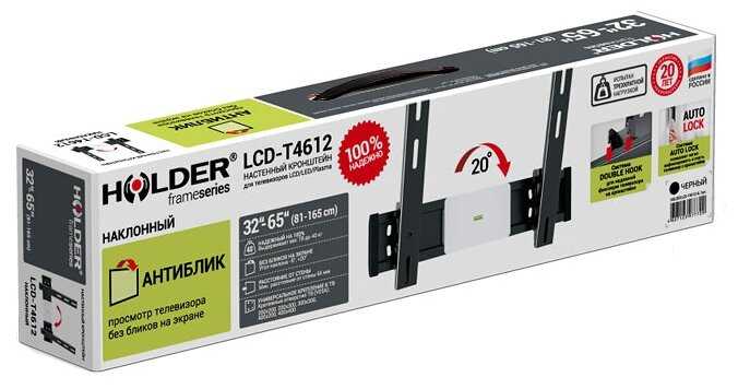 хороший кронштейн, увесистый, из хорошей стали, встроенный маленький уровень почти точный, (сравнивал со строительным). телевизор держит, наклон 20 градусов(20 гр. это и был критерий выбора) поскольку повесил почти под потолком, что бы смотреть лежа на кровати.