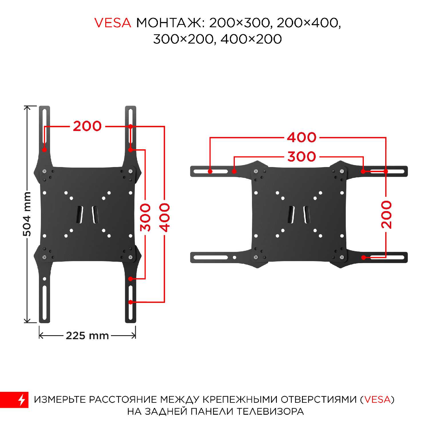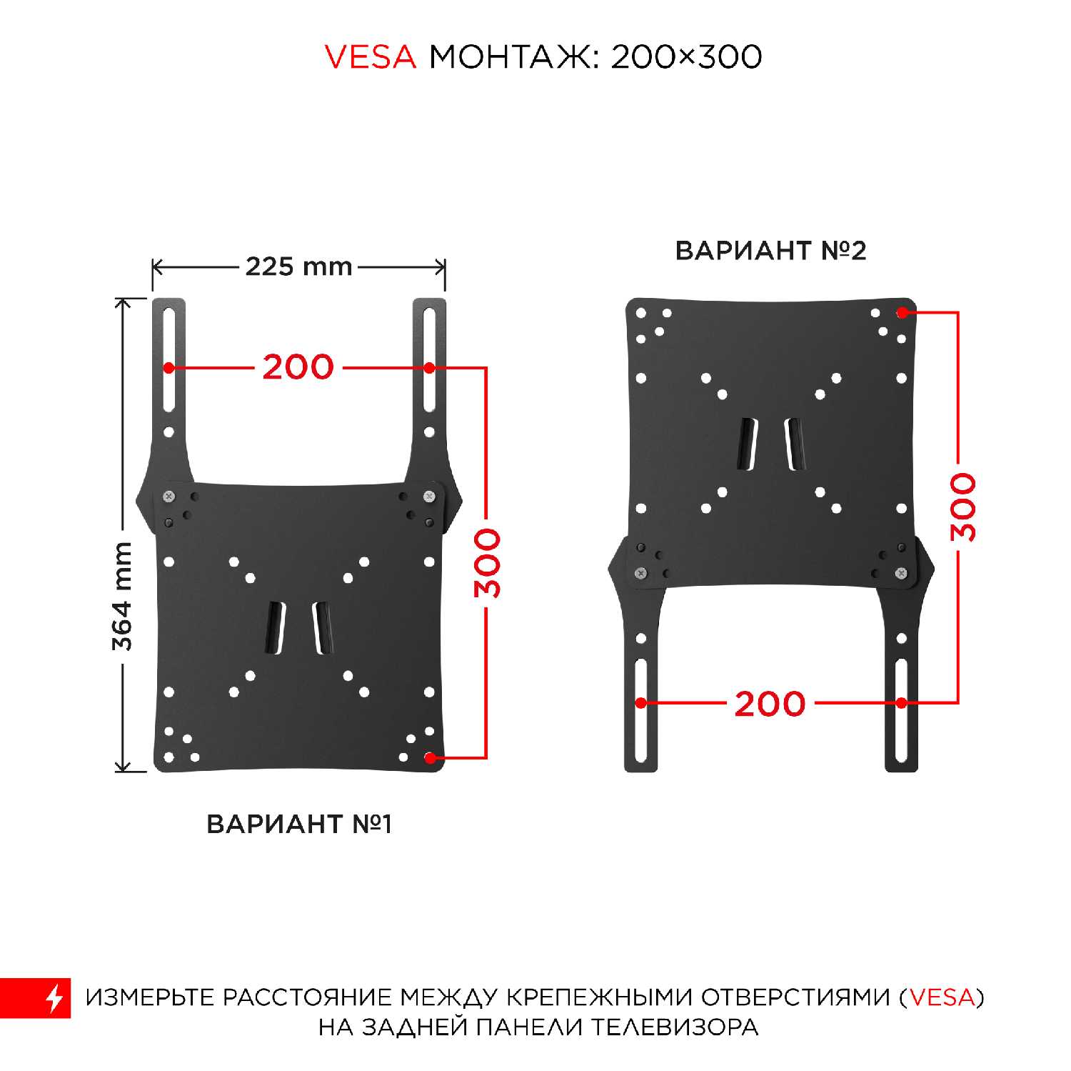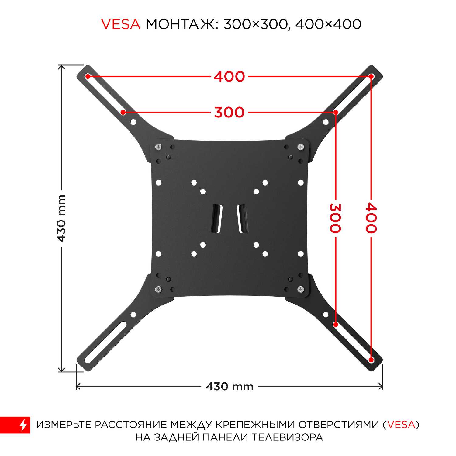 | Стандарт крепления VESA : | 100x100 мм, 200x100 мм, 200x200 мм, 200x300 мм, 200x400 мм, 300x200 мм, 300x300 мм, 400x200 мм, 400x300 мм, 400x400 мм, 75x75 мм |