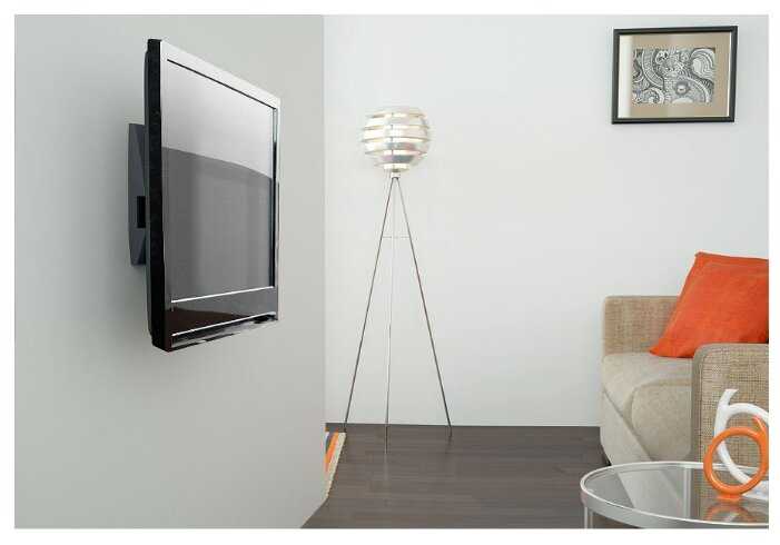 - Отступ от стены 7–10 см, помещается антенный кабель перпендикулярно, не видно за ТВ.