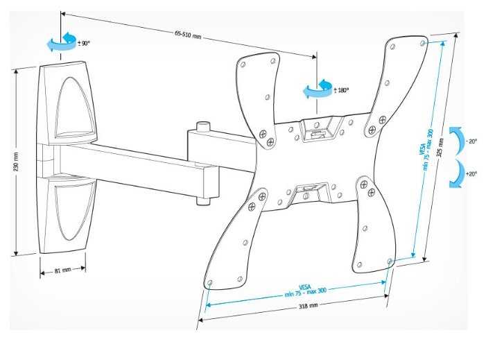 | Регулировка : | наклон, наклон и поворот, отступ от стены, поворот |