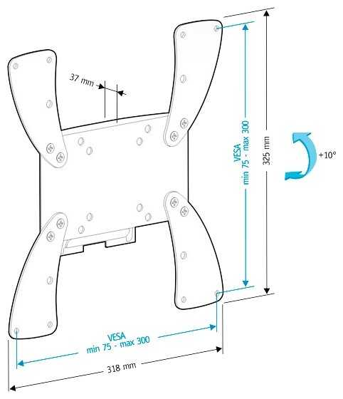 | Стандарт крепления VESA : | 100x100 мм, 200x100 мм, 200x200 мм, 200x300 мм, 300x200 мм, 300x300 мм, 75x75 мм |