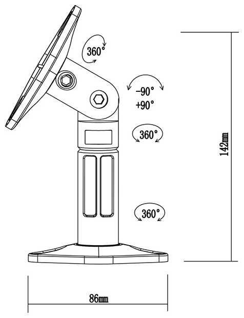 | Угол поворота в горизонтальной плоскости : | 360 ° |