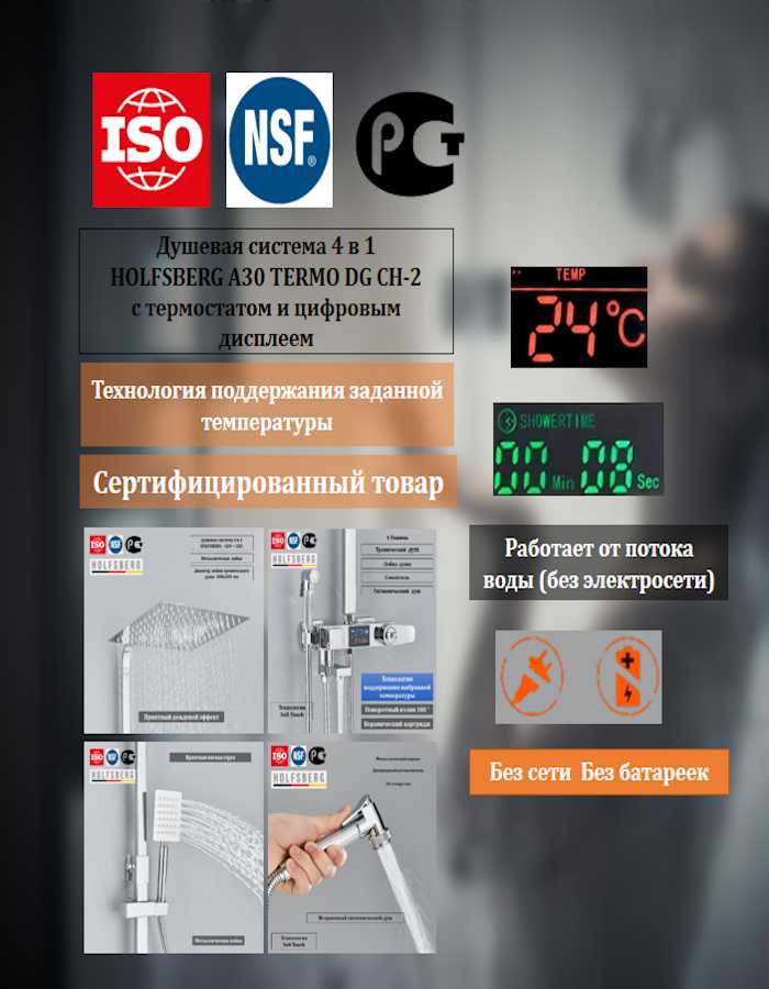 Характеристи HOLFSBERG Душевая система с термостатом и тропическим душем