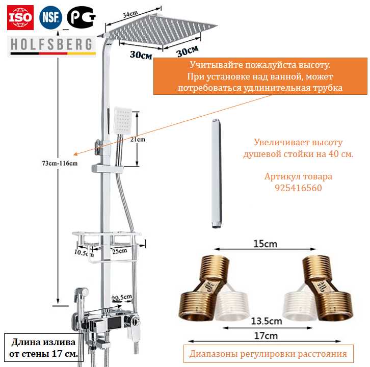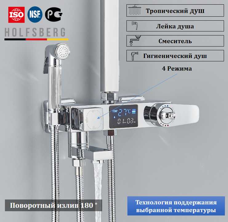 22 отзывов пользователей o HOLFSBERG Душевая система с термостатом и тропическим душем