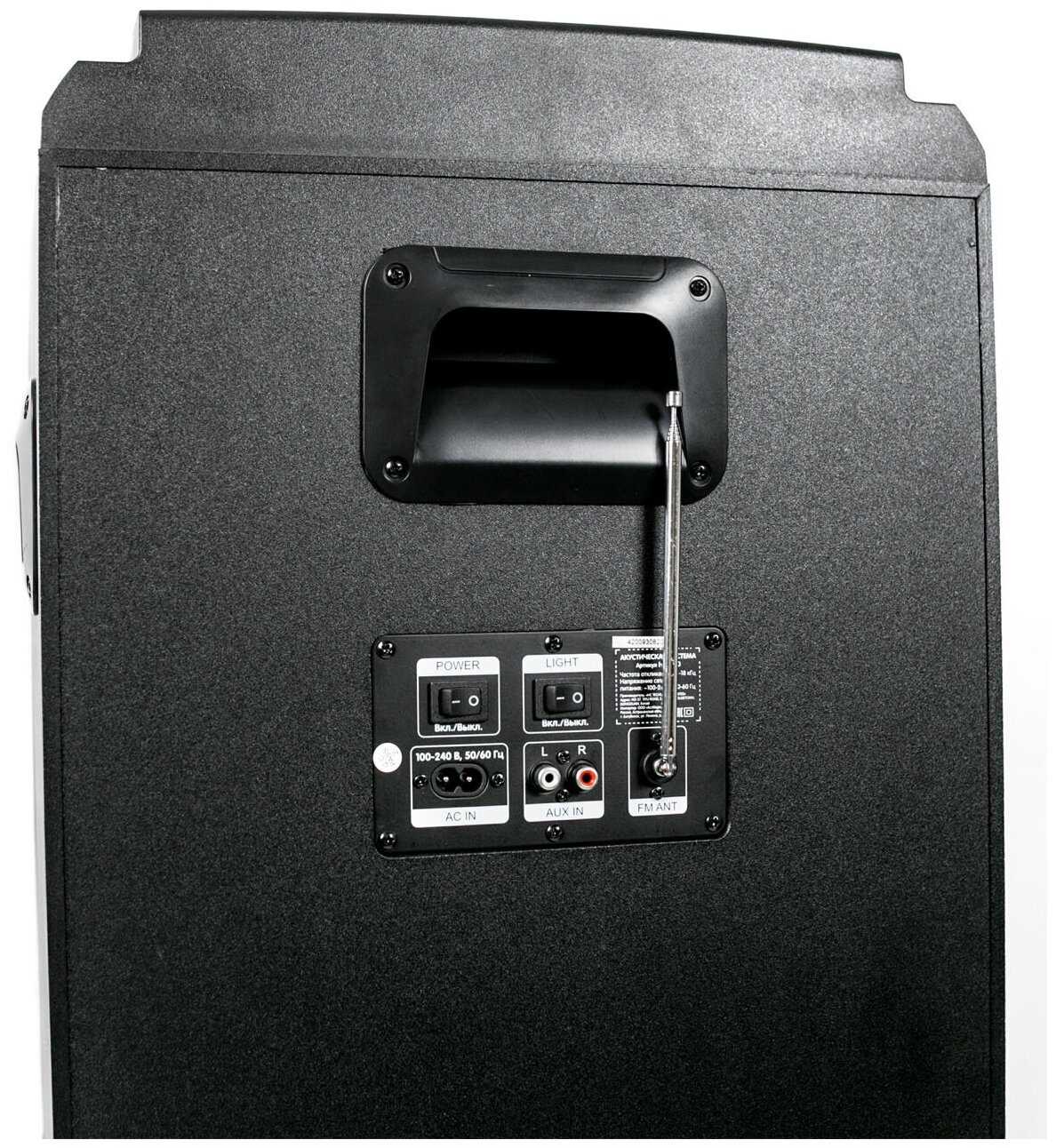 Дополнительная информация : | В комплект входит: беспроводной микрофон для Караоке в количестве 2 шт. (работает от батареек типа АА (2 шт) – не входят в комплект поставки), пульт дистанционного управления (работает от батареек типа ААА (2 шт) – не входят в комплект поставки), аудио кабель, шнур питания, индивидуальная коробка, инструкция по эксплуатации, гарантийный талон. |