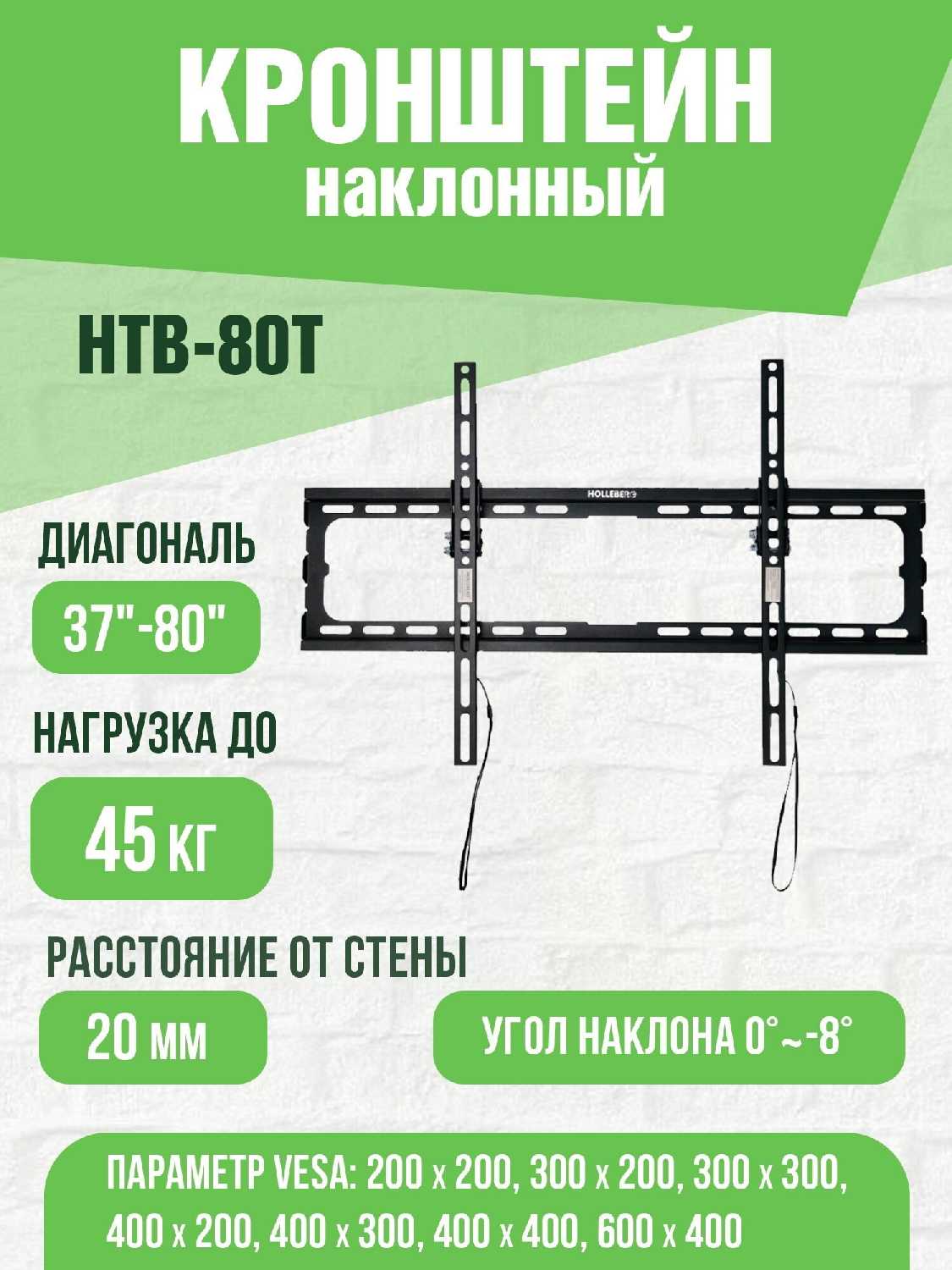 20 отзывов пользователей o Holleberg Кронштейн для телевизора наклонный (HTB-80T)