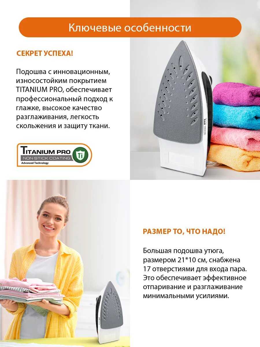 Недавно приобрела новый утюг, и я в восторге от качества его работы! Он быстро нагревается, отпаривает и гладит ткани безупречно, делая процесс ухода за одеждой более эффективным. Эргономичный дизайн и надежная работа делают использование этой техники удобным и приятным. Рекомендую этот утюг всем, кто ценит качество и удобство вещей.