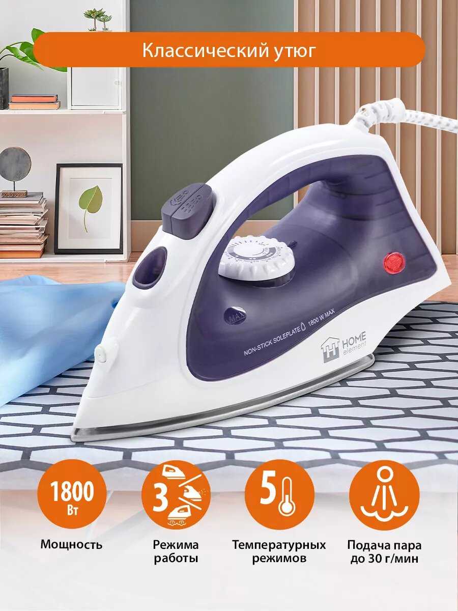 30 отзывов пользователей o Home Element Утюг с тефлоновым покрытием и отпариванием
