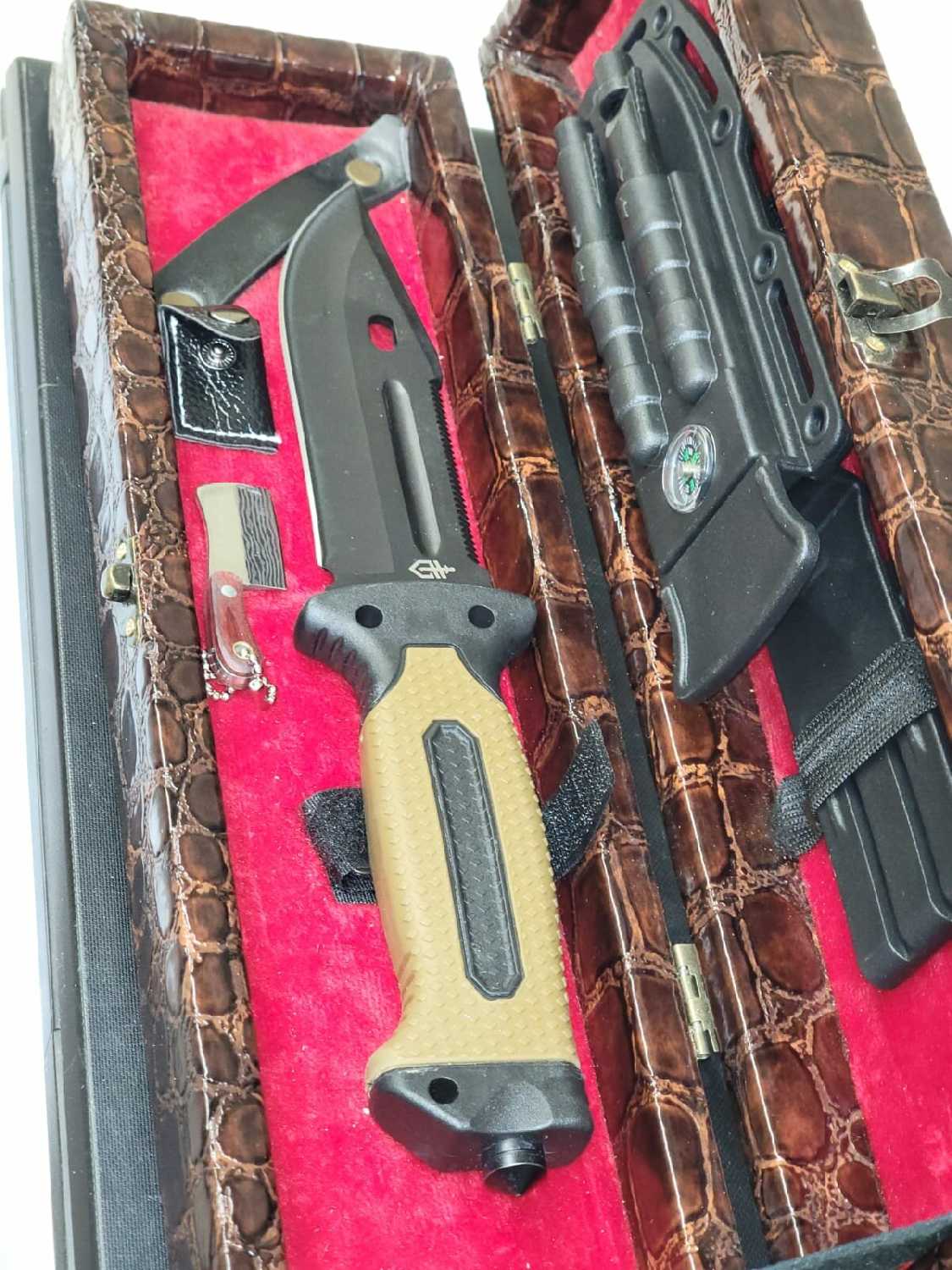 - + Взял как подарок на новый год знакомому, на вид классный, выглядит достойно в упаковке, есть кабура, есть "точилки" для туризма самое - то ! Есть ещё призент в упаковке- ручка! Мое нравится, себе тоже закажу