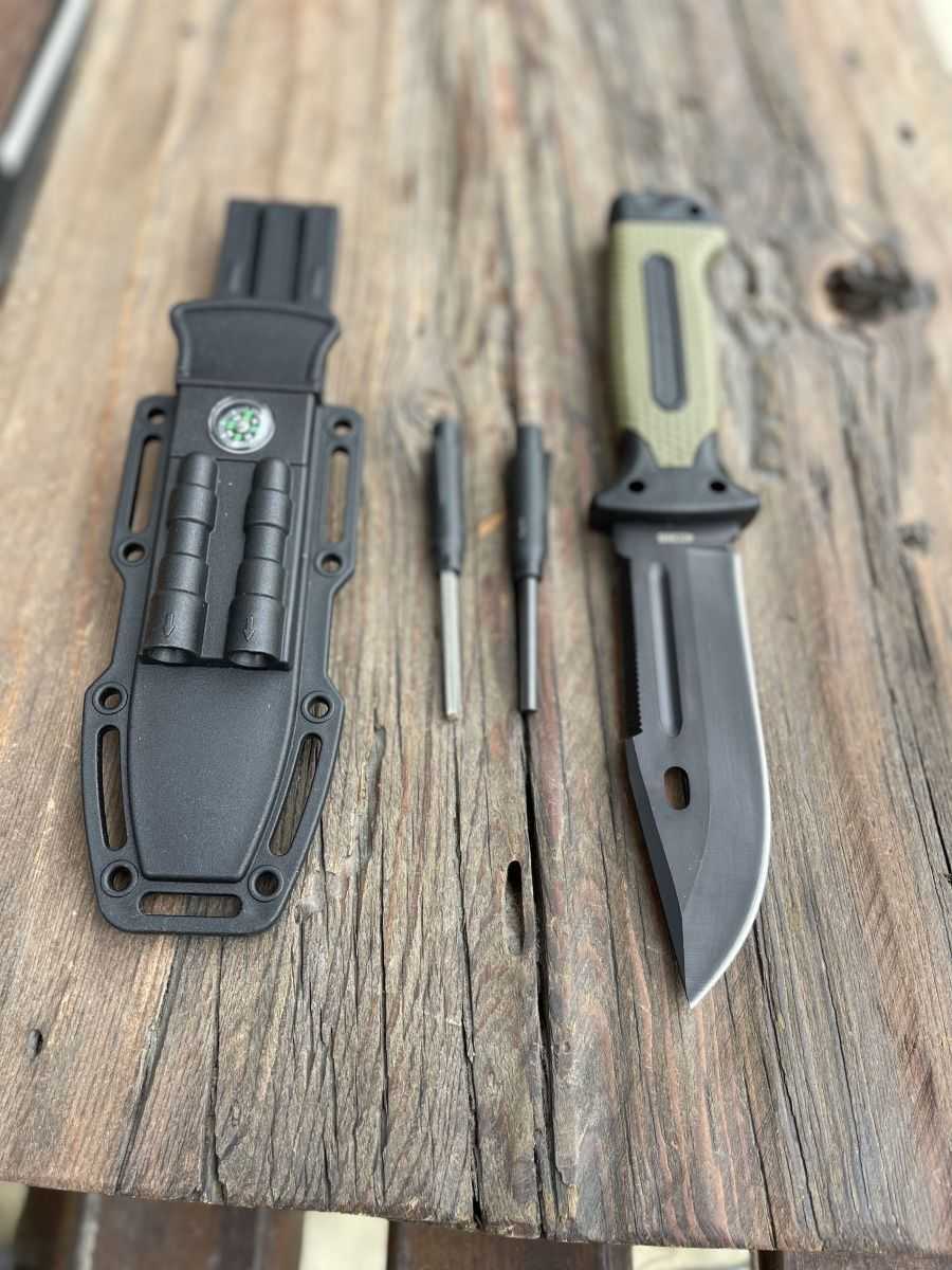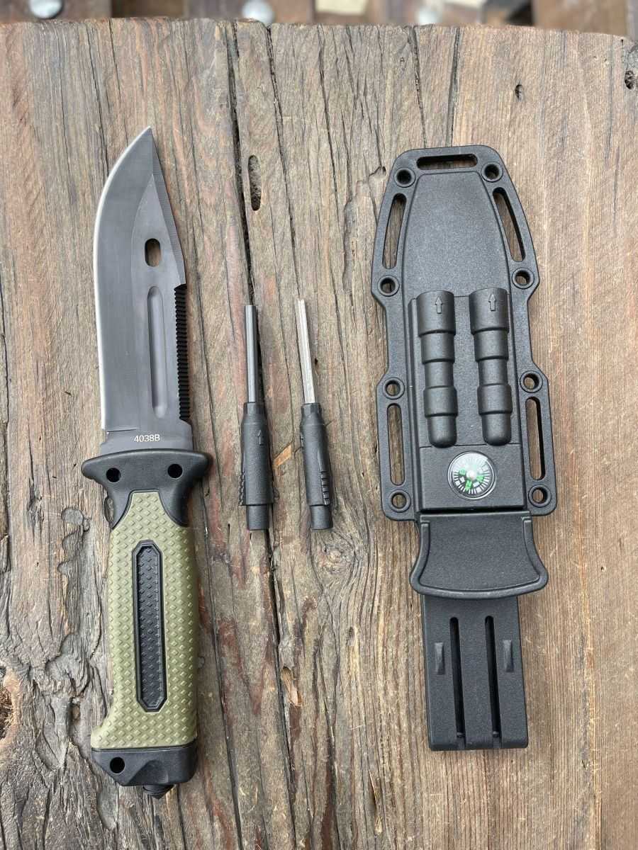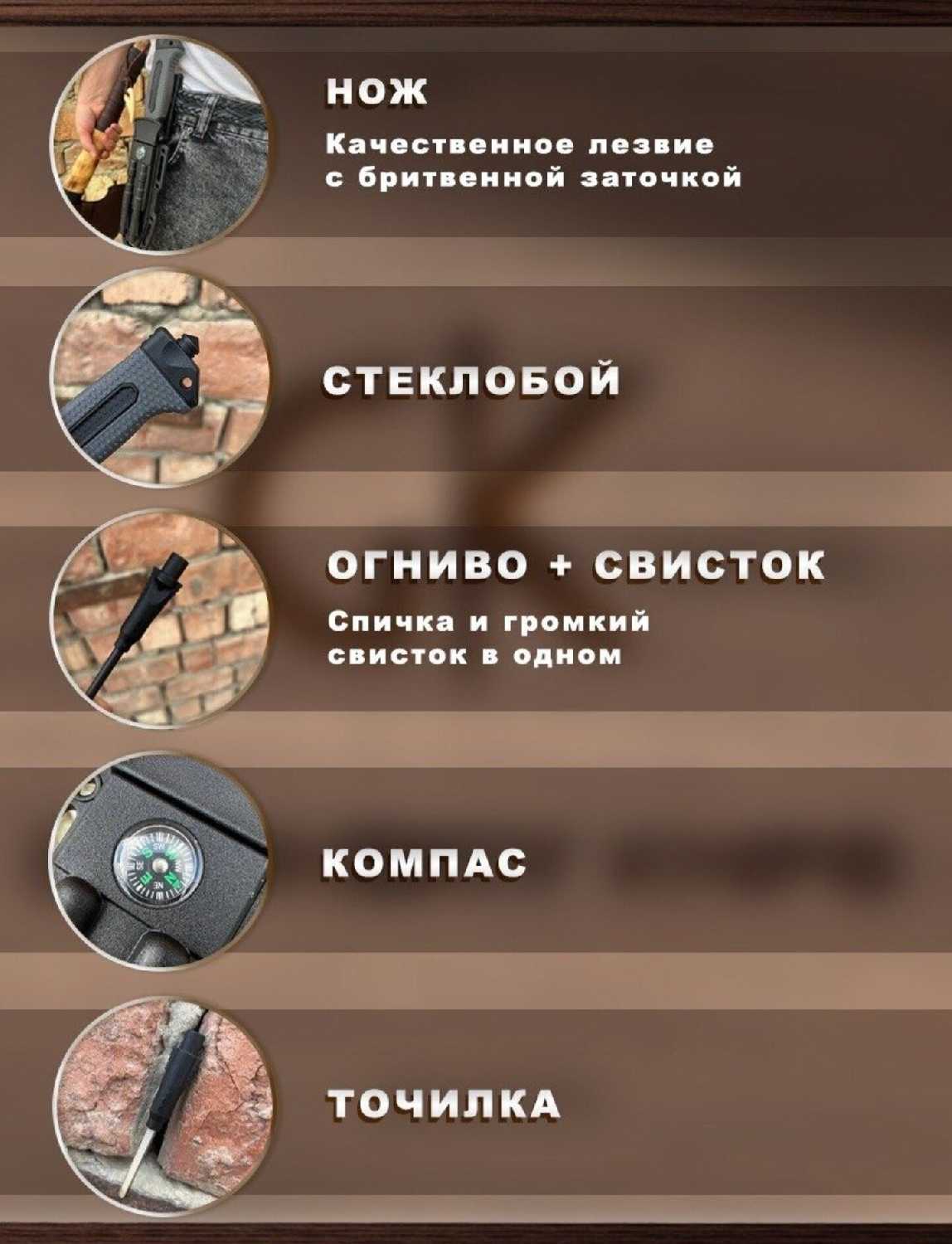 | Дополнительная информация : | Нож с чехлом с огнивом, точилкой свистком |