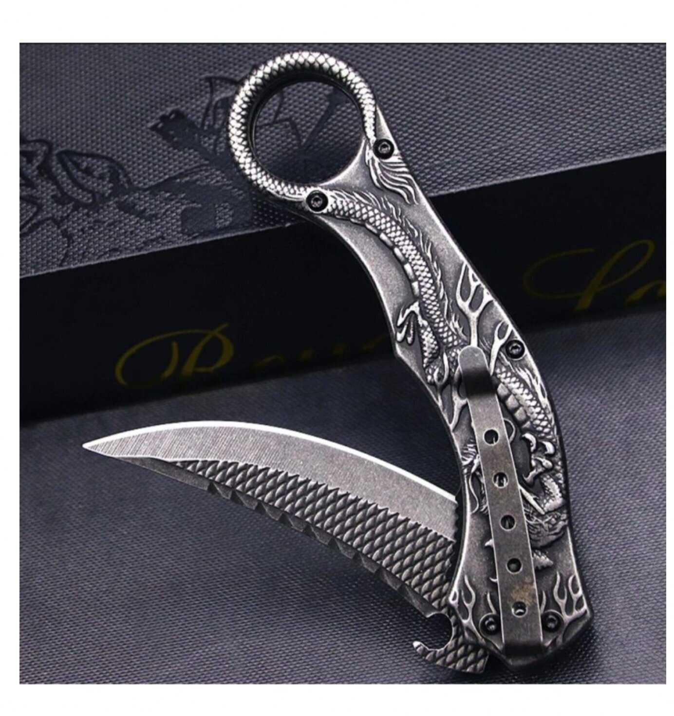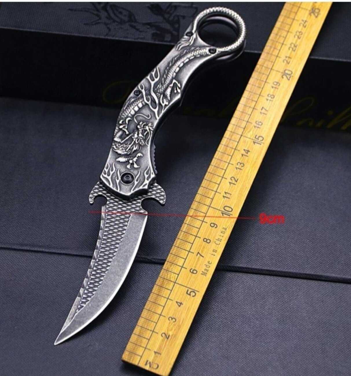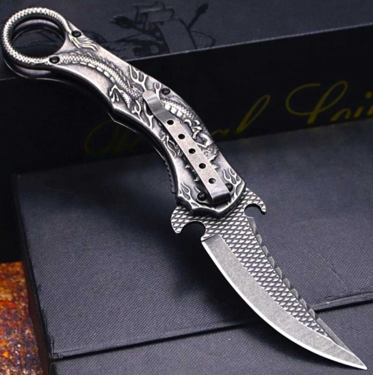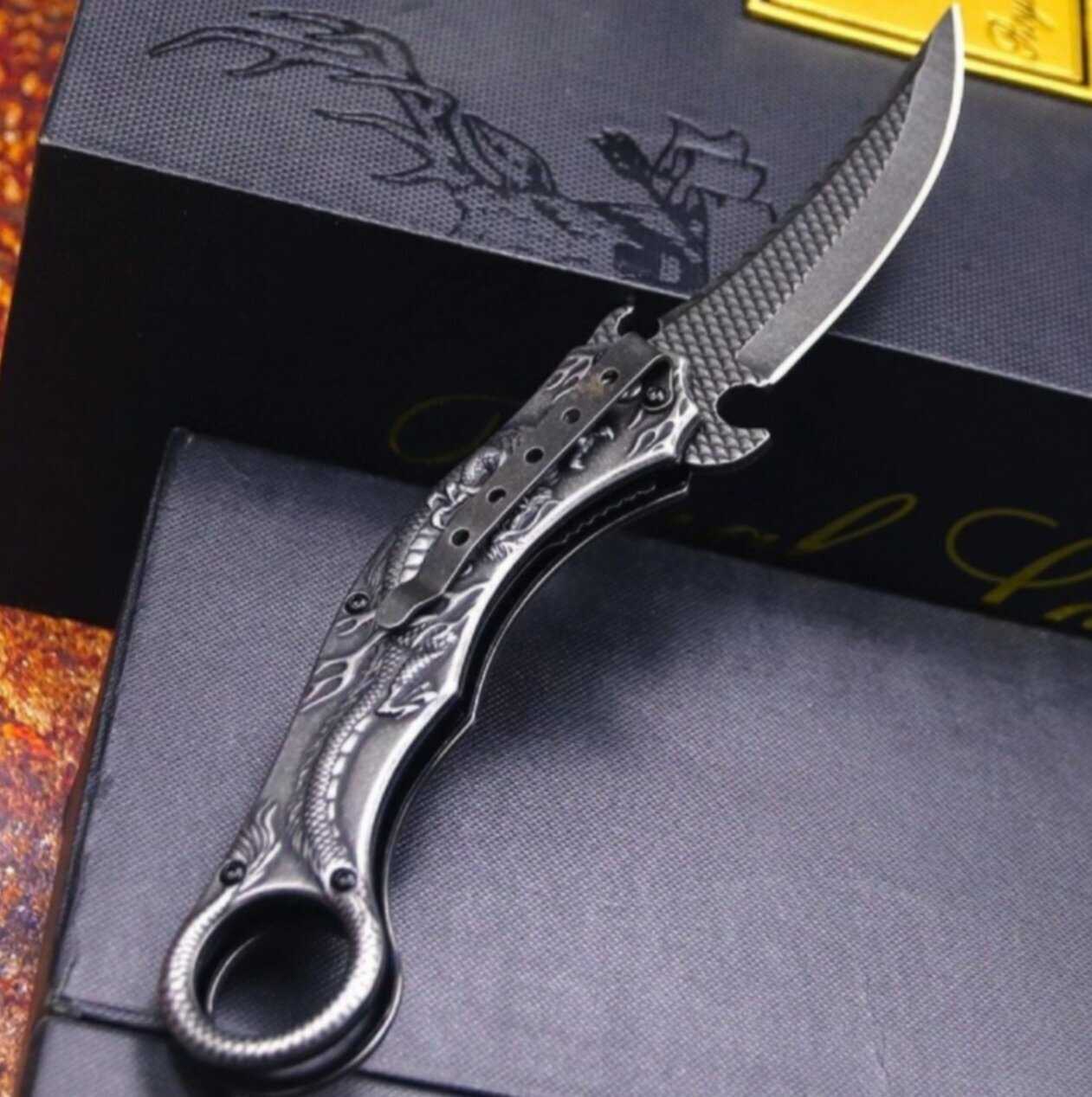 - + Острый, очень красивый, осторожнее раскрывайте и закрывайте(я просто в подарок брала, раскрыть смогла, а когда пыталась закрыть–порезалась :)). Есть специальная задвижка рельефная, которую пальчиком можно отодвинуть и закрыть нож(не сразу увидела). Можно раскрыть его сильным и резким взмахом руки (но лучше так не делать, потому что можно пораниться)