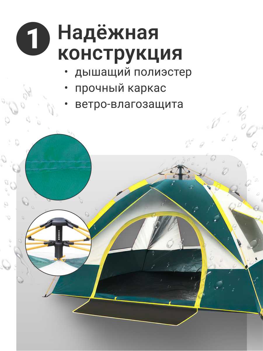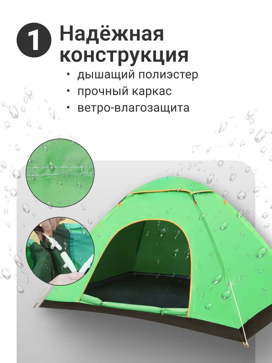 - - Серьёзных проблем хватает. Ткань сильно воняет пластиком, и этот запах никак не уходит даже после проветривания. Она односторонняя, так что перед использованием приходится обрабатывать её специальным средством от влаги, как и любую обувь. На природе под лёгким дождиком пару капель всё равно просочилось сквозь крышу, а при нормальном ливне точно поплывёт. Главный минус - длина: она коротковата, головой и ногами упираешься прямо в стенки, подойдёт разве что для совсем маленьких людей. На ветру окна хлопают шумно, а ткань уже начала расходиться у входа. Плюс чехол пришёл с порванным швом, и в целом материал не выглядит прочным.