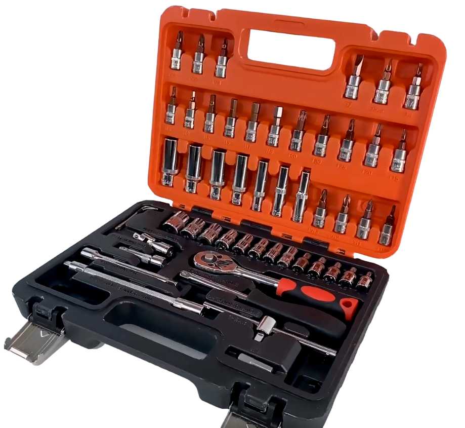 | Инструменты в комплекте : | ключи гаечные, ключи имбусовые (шестигранные), рукоять для бит, трещотка |