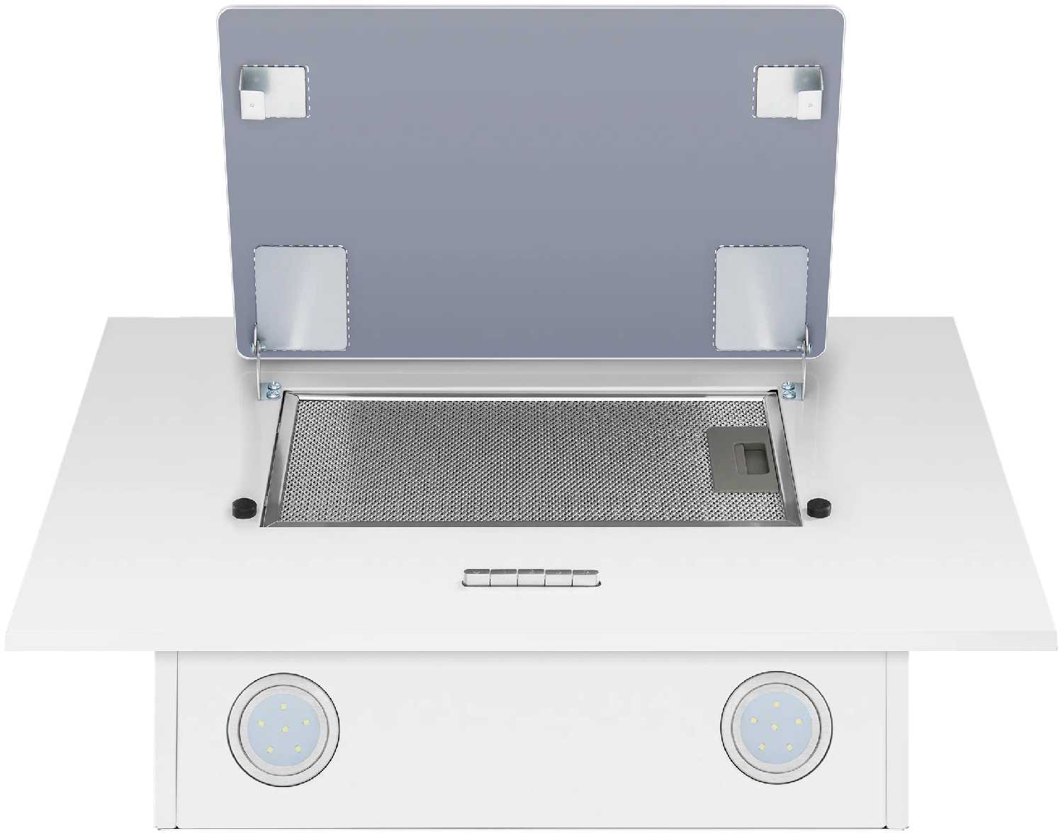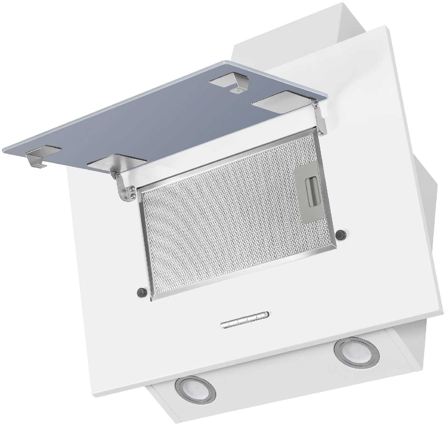 Обновили на кухне всю технику. Вытяжка не стала исключением. Модель нравится по внешнему виду. За счет того, что поверхность у нее наклонная, когда вытяжка не нужна она абсолютно не мешает. Есть три скорости на выбор, я в основном использую среднюю. Несмотря на то что поверхность полностью стеклянная, за счет белого цвета на ней не видно никаких отпечатков пальцев и разводов после мытья.