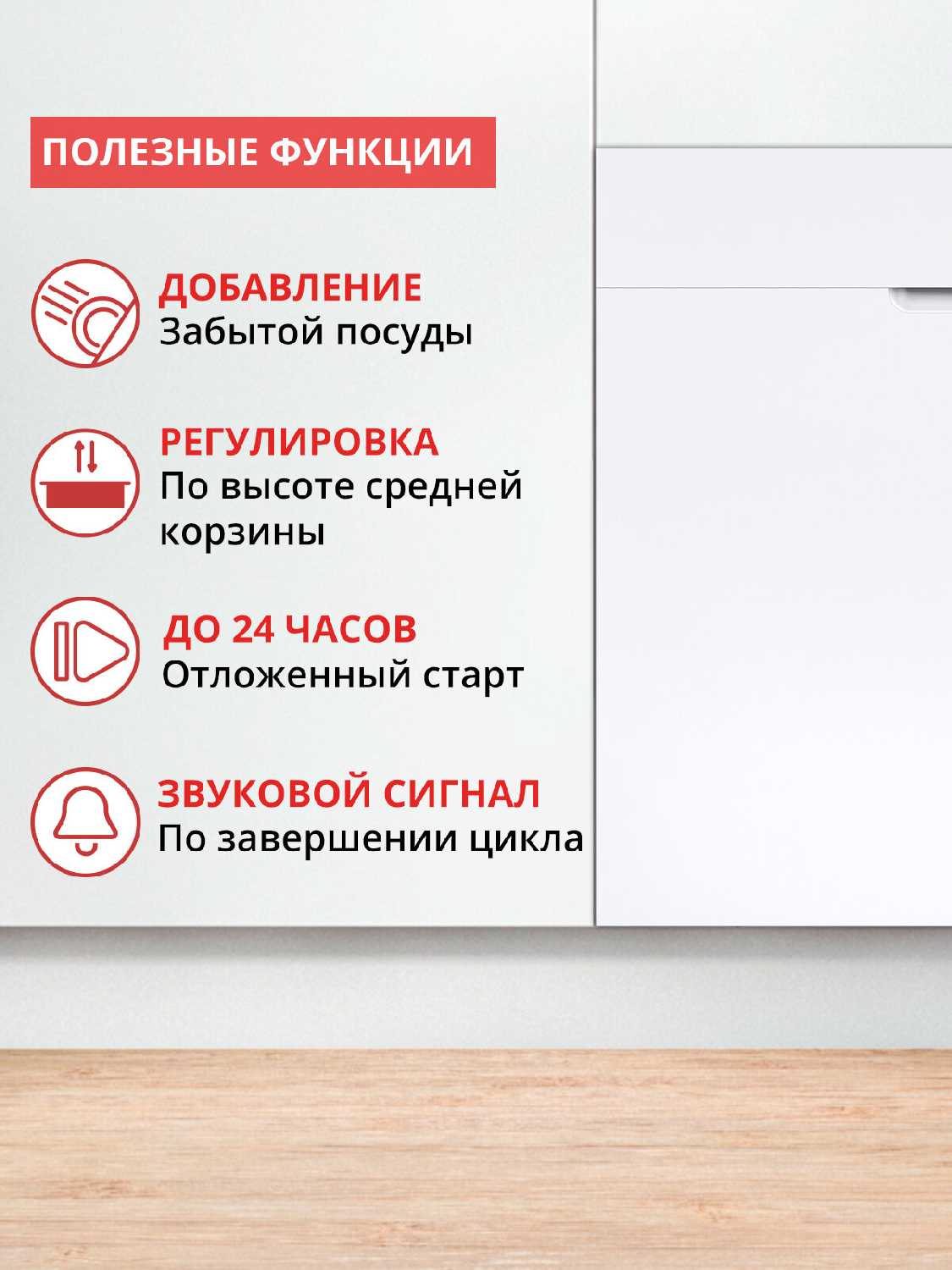 | Дополнительная информация : | Турбосушка. Индикация окончания мойки "Луч на полу". Защита от протечек. Съемная корзина для столовых приборов. Возможность использования моющих средств "3в1". Отсрочка старта от 1 до 24 часов и интервалом в один час. |