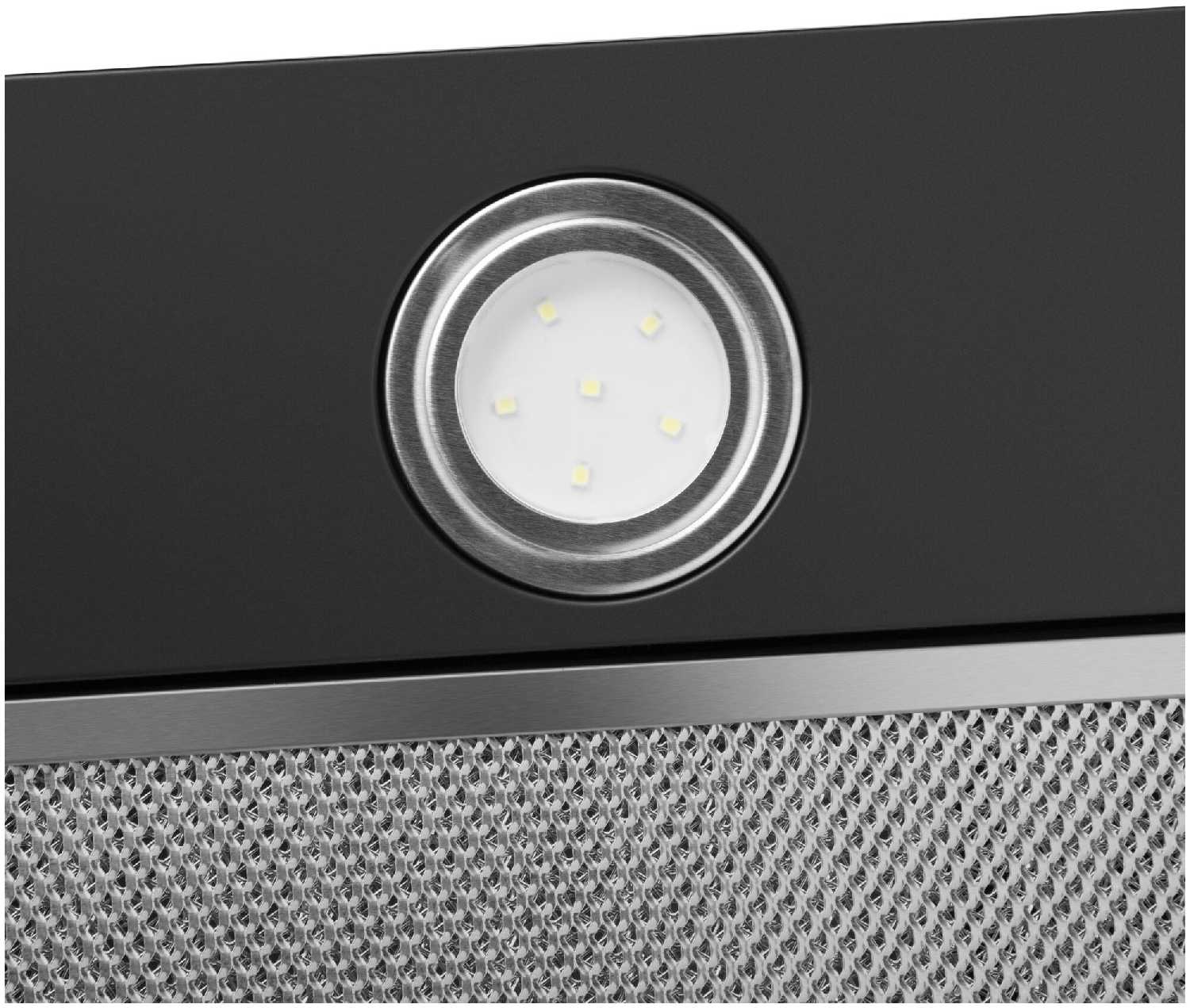 - LED-лампы холодного белого света (6000–6500 К) освещают рабочую зону без бликов, заменяя дополнительное кухонное освещение. Пользователи используют её даже как ночник.