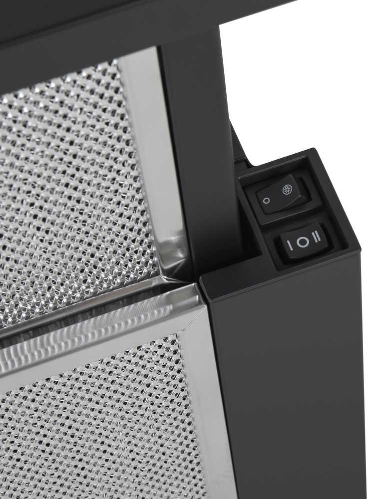 - На первой скорости тяги может не хватать для больших кухонь, а вторая уже избыточно шумная.