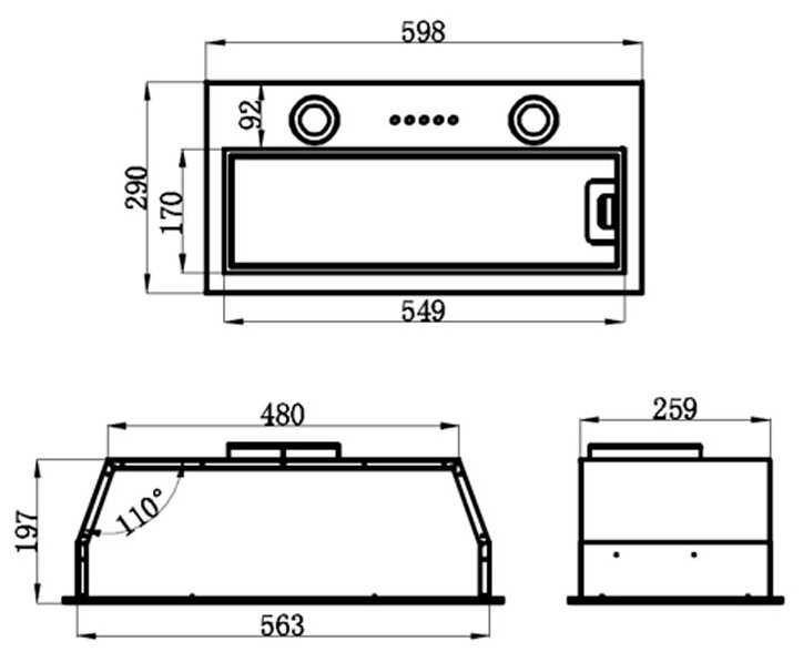 - Глубина корпуса (30 см) позволяет встраивать вытяжку даже в узкие шкафы глубиной 35 см, хотя может потребоваться подгонка полок.