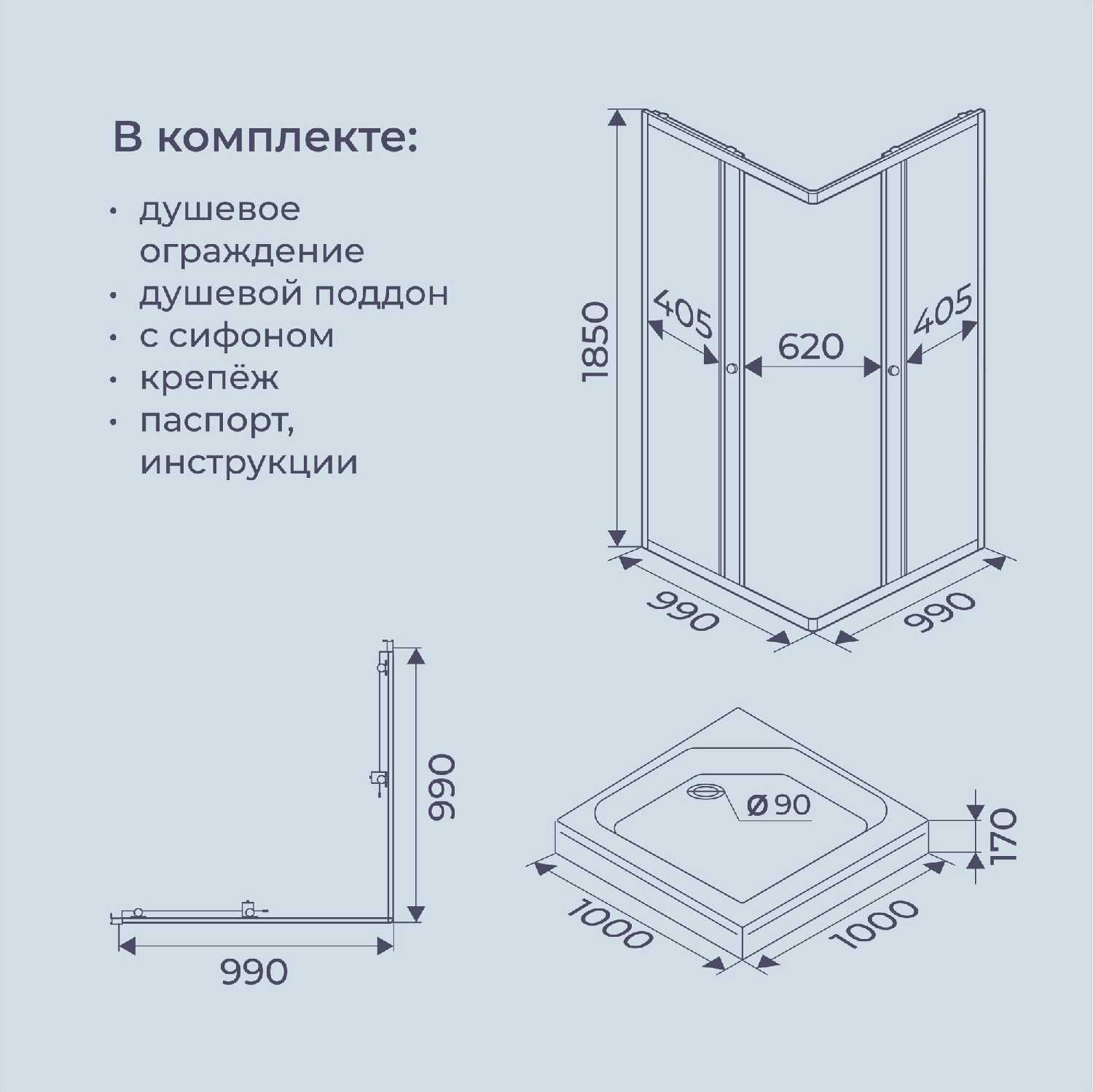 Дополнительная информация : | ориентация универсальная, в комплекте: душевое ограждение поддон инструкция |