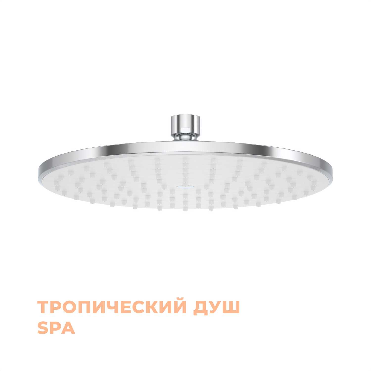 - Обеспечивает мягкую равномерную подачу под небольшим углом, создавая эффект тропического душа.